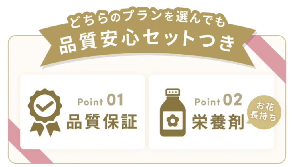 | プラン | シンプルにお試し、スタンダードの2プラン | 色指定、ボリューム指定など、プランが豊富 | 毎日1輪、月⚪︎回など、プランが豊富 |