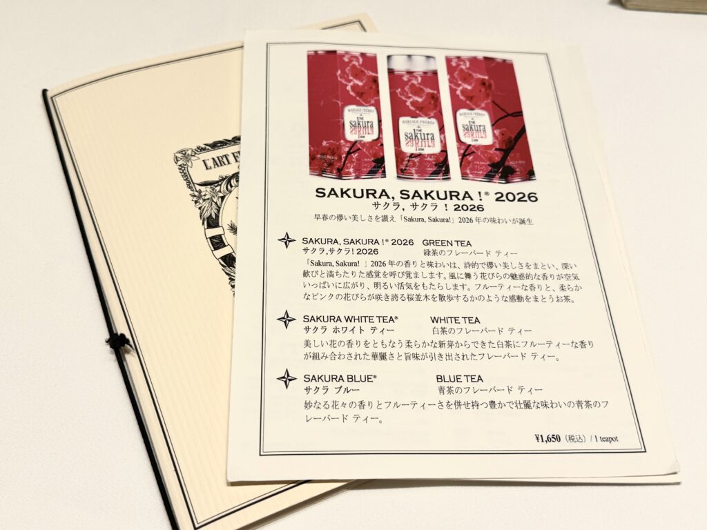 カフェでは、季節限定のティーを味わうことができます。2026年のSAKURAシリーズは、下記の3つ。
