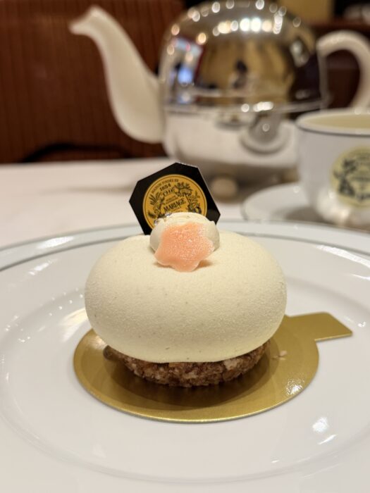 そして、美味しいお茶に欠かせないのが美しいスイーツですよね。 今回は「SAKURA 2026」に合わせて、真っ白でコロンとしたフォルムが愛らしいこちらのケーキを選びました。