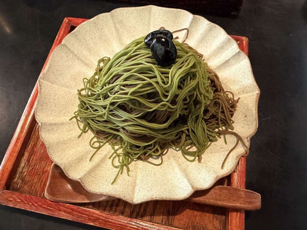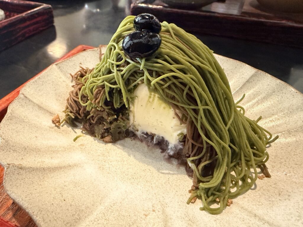 おすすめは、なんといっても本店限定の「茶々モンブラン」。店内で絞った抹茶とほうじ茶のたっぷりモンブランです。中には、バニラアイスにアクセントのレモンジャム、一番下にはザクザクとしたシリアルが敷いてあります。一口食べると、口の中で、濃厚なモンブラン>まろやかバニラアイス>爽やかなレモン>ザクザクシリアルと、味も食感も温度も色々で楽しいです。ここに、渋い日本茶を一口合わせると、たまらない!止まらない!