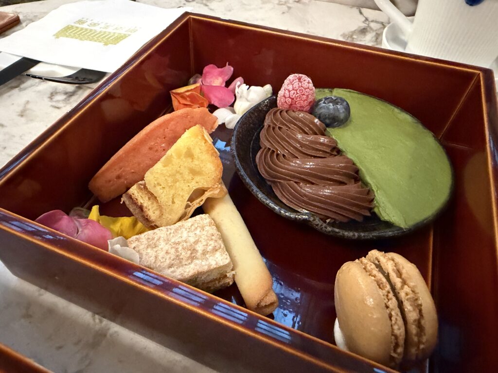最後に、下段は、再度スイーツの段。マドレーヌや、マカロンなど。印象位的だったのは、抹茶とチョコのクリーム!濃厚で、でも抹茶クリームはふわふわで軽く、紅茶>クリーム>紅茶の無限ループをしてしまいました。