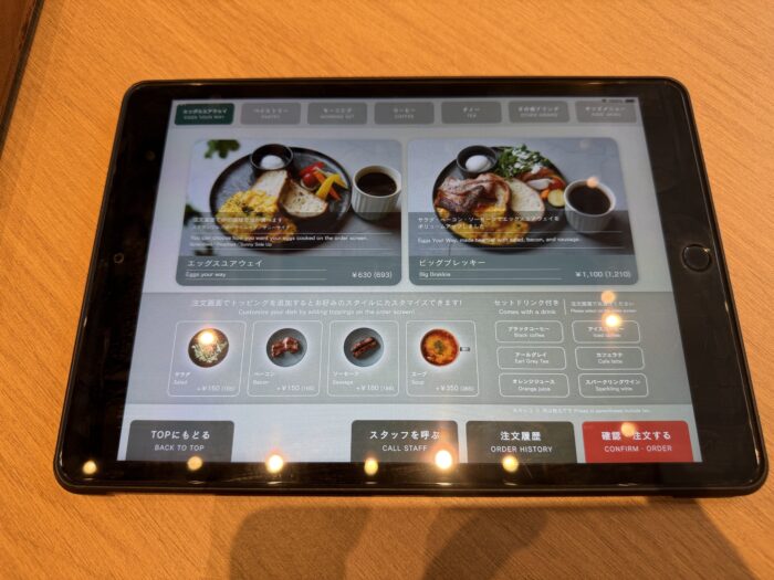 タブレットでスムーズ注文!お茶付きが嬉しいモーニングセット