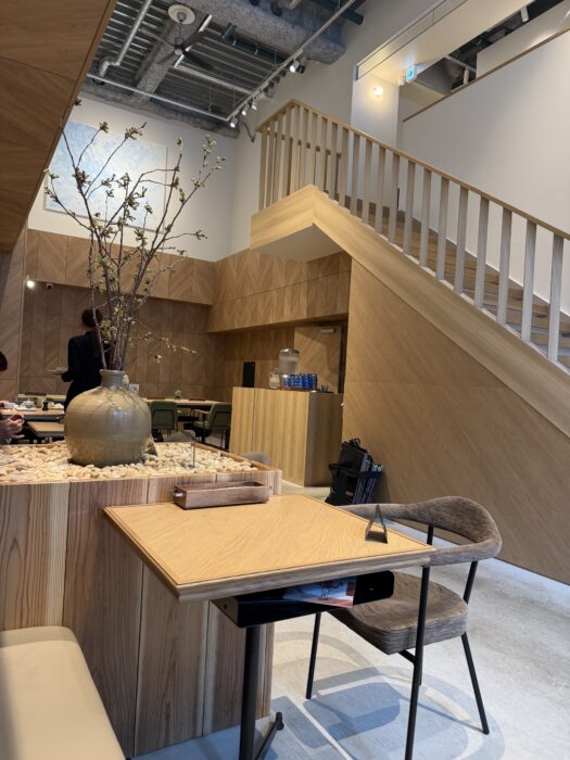 実は、「SiKiTO」は、お花のサブスクの中でも珍しい「枝もの」定期便のブランドです。ということで、このカフェの最大の特徴は、なんといっても「枝物が飾ってあるインテリア」! お店のあちこちに、季節を感じるダイナミックな枝物が活けられているんです。