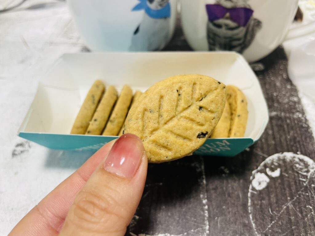 クリスマスのティービスケットも美味しい!ビスケットには紅茶の茶葉が混ぜ込んであり、ほんのり紅茶風味とバターの香り。紅茶との相性抜群でした。