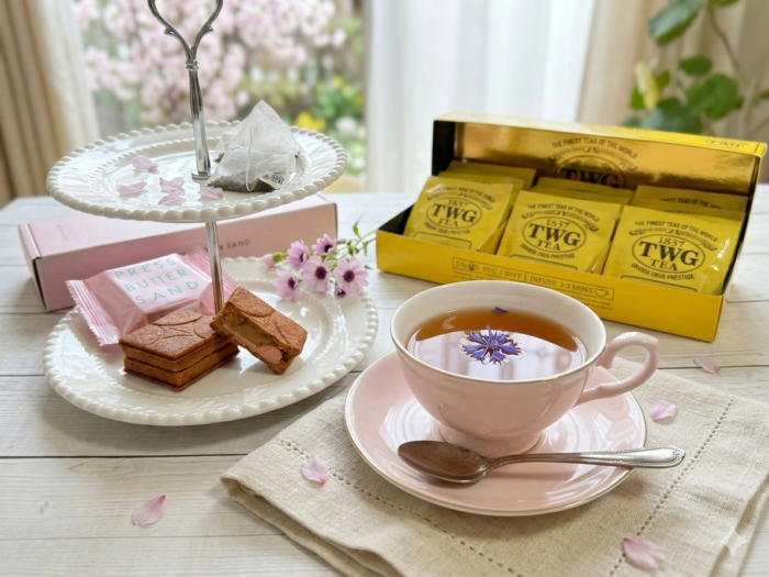 今回は、春のティータイムに合わせて、プレスバターサンド〈桜〉とTWGのフレンチアールグレイの組み合わせをご紹介しました。