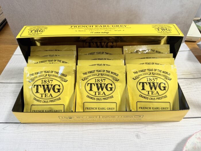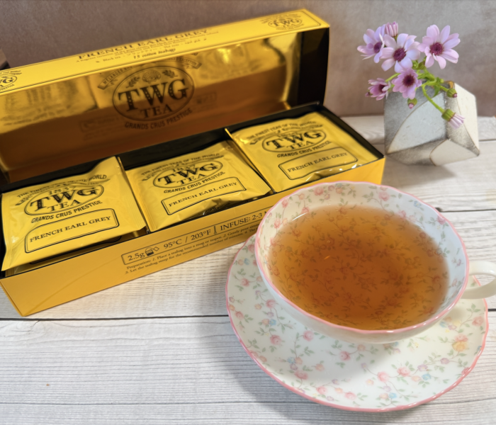 この桜スイーツに合わせたのは、世界的に愛されるシンガポールの高級ティーブランド、TWG Teaの代表作です。数あるアールグレイの中でも、飲みやすいので、初心者にもおすすめです。