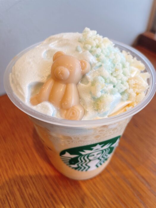 まずは、ふわもこの淡いブルーのムースを一口。甘い!その中に…どこか懐かしいラムネのような、爽やかな風味と苦味がふわりと広がります。Starbucksのサイトを見ると、アールグレイフレーバームースとのこと。ふわっふわのふわっわふわでした。そしてもちろんベースのブーケティラテが美味しい。時々、スポンジケーキクラムの甘さがアクセントになり、ちょっとしたスイーツ感も。見た目も合わせて、夢の中でパジャマパーティーに迷い込んだかのような、幻想的な味わいでした。