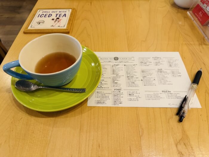 そして、ムレスナの名物といえば、なんといっても「ティーフリー」。 100種類以上あるフレーバーの中から、スタッフの方がその時々のおすすめをランダムに注いでくださるスタイルです。